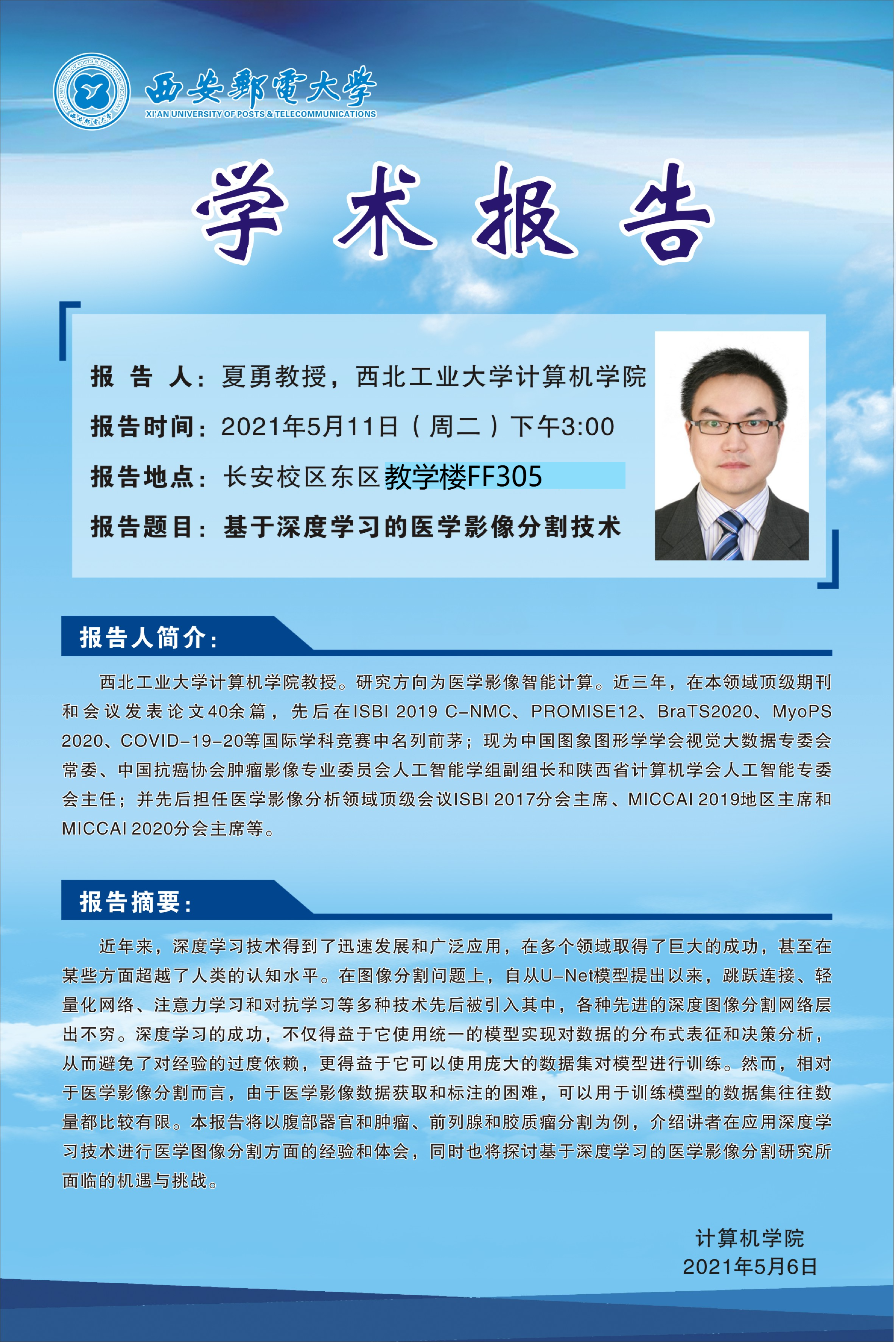 “基于深度学习的医学影像分割技术”学术报告通知