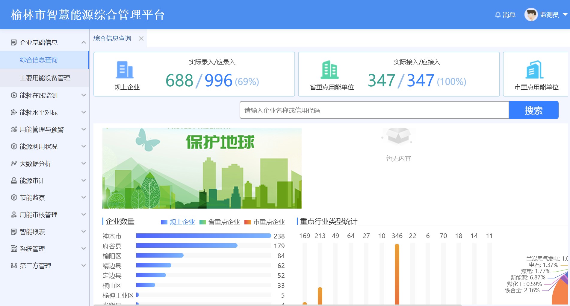 成果简介: 本项目拟通过建设一套基于工业互联网、云计算和大数据AI等ICT技术的工业互联+能源智慧管理平台。该项目通过视觉设备、能耗感知等前端设备获取工厂和企业的能源消耗数据,通过大数据算法和后端可视化技术实现企业级用能数据实时监测(日监测)和企业用能量偏差不高于1%,碳排量偏差不高于5%的指标检测,实现支持多行业计算模型扩展,支持多地区多组管控指标切换。最终为本省内高耗能工厂和企业的能源消耗和碳排放建立碳“足迹”曲线,帮助企业提高生产效率,降低碳排放和能源消耗,为实现“省级”综合管理奠定技术基础和为科学决策提供保障。市场前景: 该项目的研究成果,可以直接在企业和政府两端进行直接部署,帮助企业完成能源管理方面的信息化改造,帮助政府完成区域内能源和碳排的宏观管理,对全省高耗能企业进行“碳足迹”画像,形成扁平化的垂直管理,推动能源与碳排的双控管理。